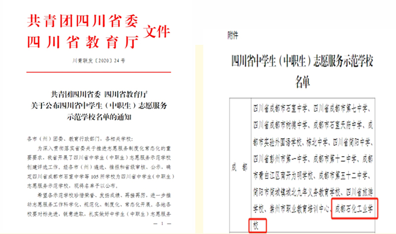 5 .2020年,我校荣获“四川省中学生(中职生)志愿服务示范学校”光荣称号,推进我校中职学生志愿服务实现新跨越。