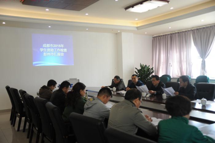 汇报会上,首先由杨德全副局长就彭州市的资助工作实施情况对检查组进行了详细汇报,主要汇报了我市资助的管理机构、实施办法以及资助落实的具体情况。