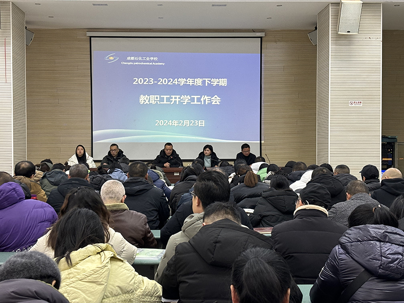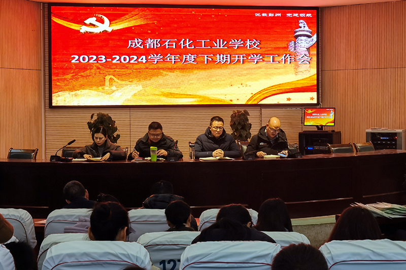 2月23日上午9:00,成都石化工业学校南北校区同步召开了2023-2024学年度下期开学工作会,党委书记周川益、党委副书记、校长张昌波分别在两个校区部署新学期开学工作。