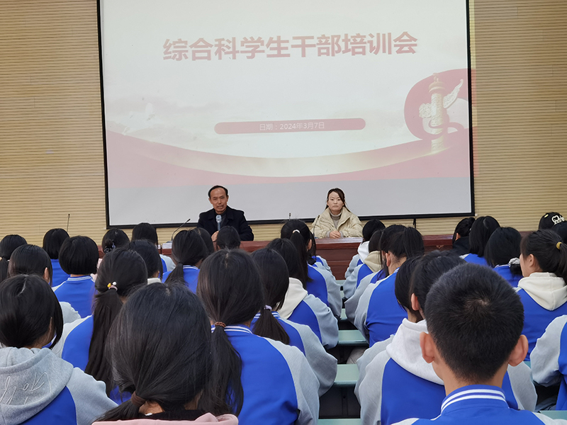 3月7日中午,我校综合科在南校区多功能厅召开了学生干部春季培训会,本次培训会的主题是:学思想 强信念 树理想 勇担当。培训会是由综合科德育副科长樊均国主讲。