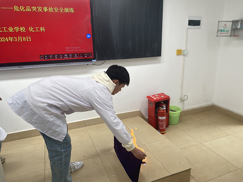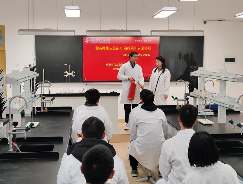 为筑牢安全防线,保障师生安全,3月8日,成都石化工业学校化工科开展了实训室及危化品安全应急演练。该专业科全体实训管理员、实训教师及各班学生代表参加了演练活动。