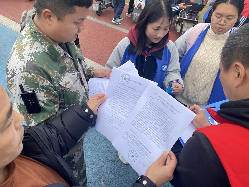 当天下午放学后,学校安保科人员对南北校区骑电瓶车上学的学生进行登记,同时对其进行无证不得驾驶机动车的安全教育,并发放了由当地派出所和学校安保科共同制定的告家长书,由学生带回家告知家长,希望家长和学校共同对学生进行交通安全教育,禁止未成年人驾驶机动车。