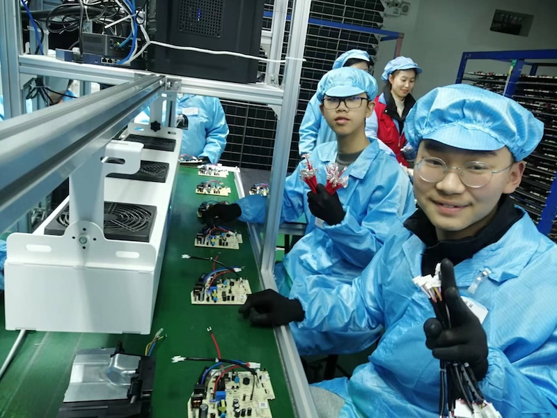 一个多月的实习过程中,同学们被分配到各个车间产线中,岗位涵盖空调器生产的全部过程。在驻厂班主任张敏、杨礼、周英建、谭利华等四位老师们的严格要求和无微不至的关怀下,同学们克服工作生活中的种种困难圆满地完成实习,赢得了企业领导和老员工的一致好评。