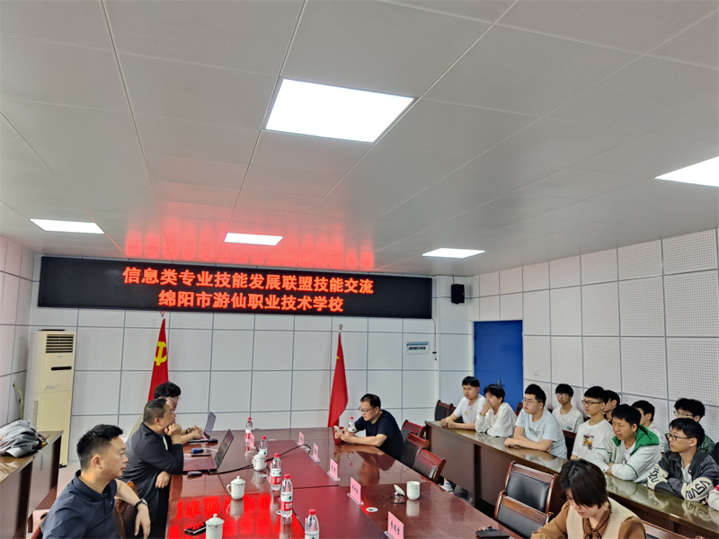 为了深化与省内中职学校的校际交流与合作,共同探索与促进中职计算机专业的发展新路径,5月7日,成都石化工业学校、成都现代制造职业技术学校、成都市礼仪职业中学、德阳通用电子科技学校、绵阳市游仙职业技术学校的计算机专业负责人、网络建设与运维赛项的指导教师及学生们齐聚绵阳市游仙职业技术学校开展了一场别开生面的交流学习活动。