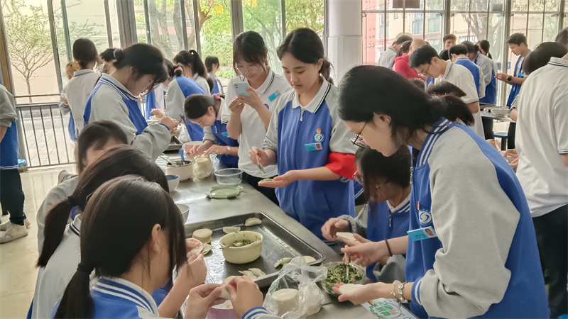 活动现场,学生干部们齐聚一堂,气氛热烈而欢快。他们分工合作,有的擀皮,有的包馅,有的配料,有的烧水,在共同制作美食的过程中,欢声笑语不断,彼此之间的距离迅速拉近,交流也越发自然和深入。一个个形状各异的饺子,不仅展示了大家的劳动成果,更凝聚着团队的协作精神。随着热气腾腾的饺子出锅,大家共同分享着这份属于自己的美味,感受着集体的温暖和快乐。