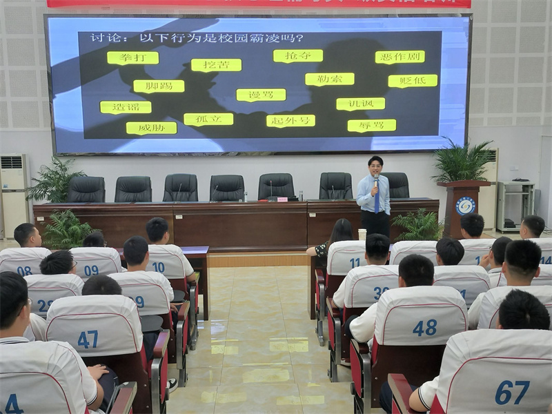 随后,杨和岸律师为同学们带来《预防校园欺凌》专题讲座。在讲座中,杨律师强调了校园欺凌的严重性和危害性,详细介绍了与校园欺凌相关的法律条款,让同学们明白在校园内实施欺凌行为是违法犯罪。通过实际案例分析、深入浅出的法律讲解以及生动的互动交流,杨律师向同学们普及了相关法律知识,引导他们遵守法律法规,树立坚定的法治观念和守法意识,并提醒同学们要时刻保持清醒头脑,学会用法律武器保护自己,远离校园欺凌。