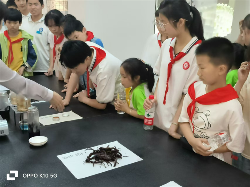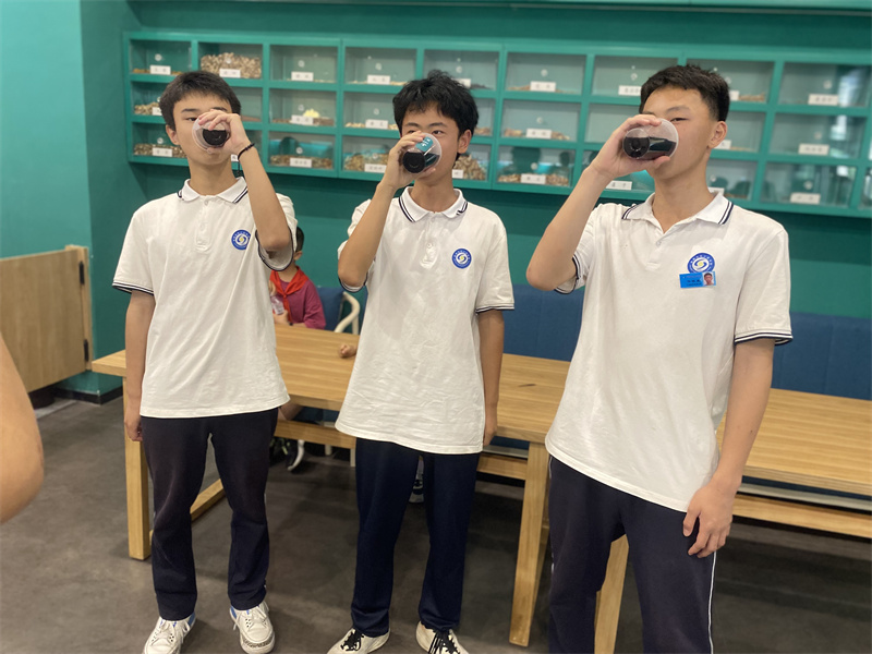 纸上得来终觉浅,绝知此事要躬行。接下来,一位位“小小药剂师”纷纷登场亮相。在中医药食疗体验中,同学们品尝了秘制配方的茶饮——陈皮桑葚饮。淡淡的苦味间,又有药材独有的口感,让人回味无穷,感叹中药的神奇。