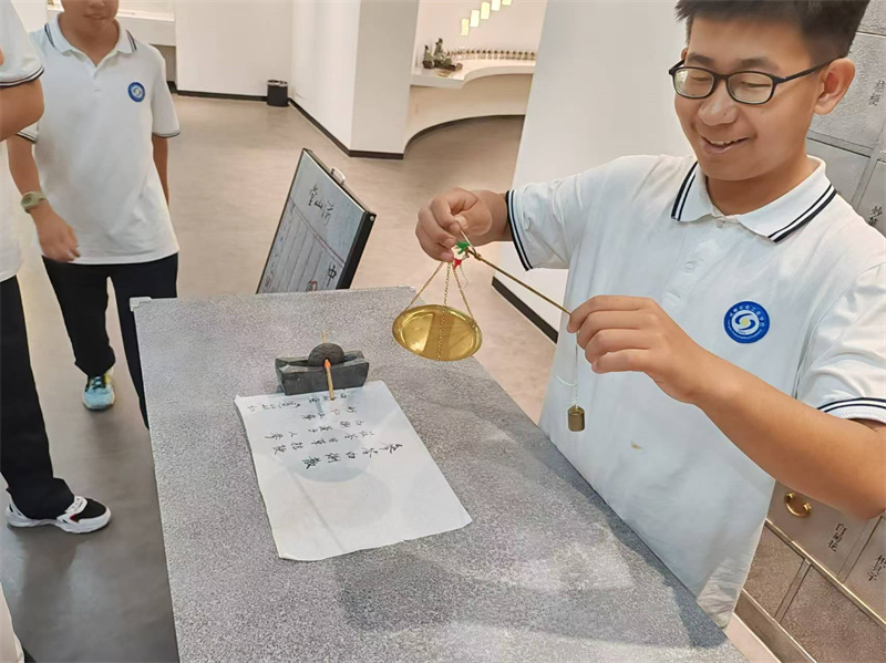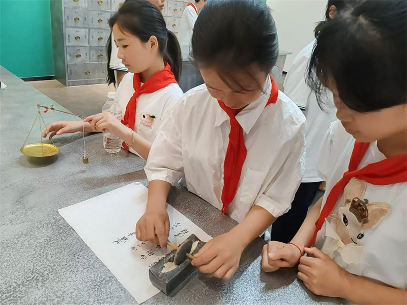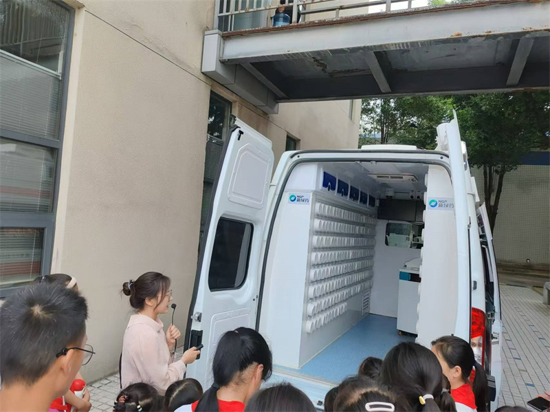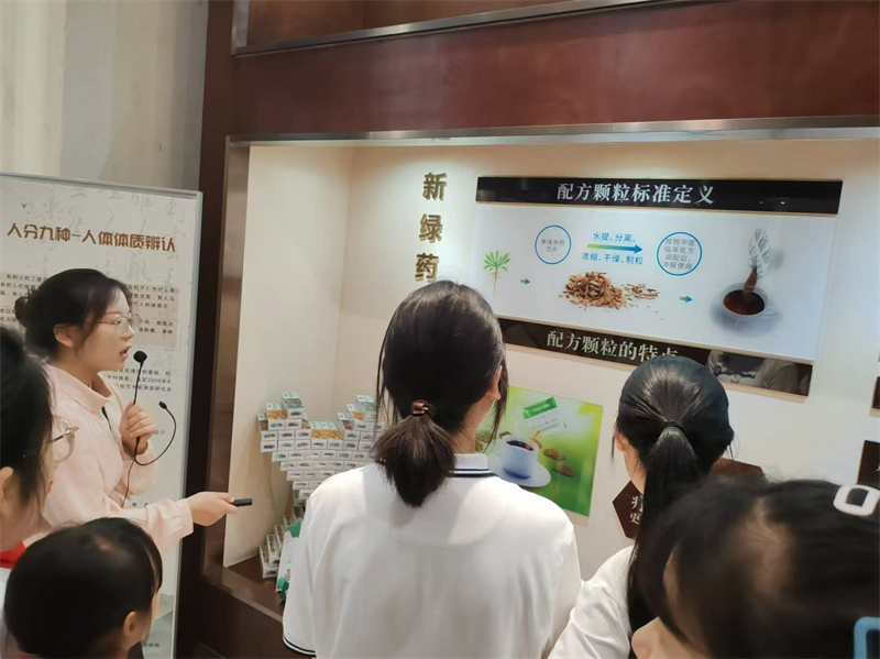 “在广袤的中华大地上生长着数以万计的动植物,在浩瀚的历史长河里,我们的先人通过不断探索研究,将智慧与实践的结晶成书成册才有了现在中国各地使用的5千多种中药。”在新绿色药业的中医药博物馆,听了工作人员的讲解,同学们不禁感叹古人的工匠精神,也为自己作为华夏儿女而倍感自豪。随后大家观看了公益音乐电影《爱的新绿色》。工作人员向大家介绍了配方颗粒的标准定义,并对新绿色药业产品作了介绍。还让大家近距离接触了“流动应急智能中药房”。