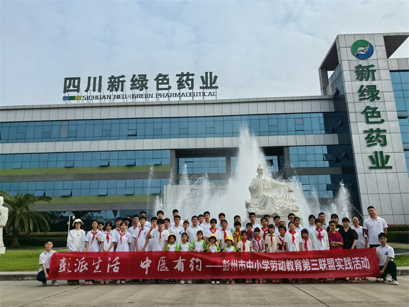 为弘扬中医药文化,引导学生崇尚劳动、尊重劳动,大力弘扬劳动精神、劳模精神、工匠精神, 5月23日,彭州市中小学劳动教育第三联盟9所学校的师生共同走进四川新绿色药业和湔山堂中医药文化研学基地,开展“彭派生活·中医有约”劳动教育主题实践活动。