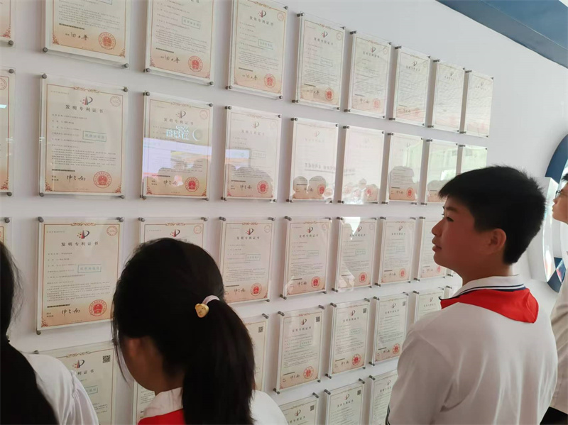 最后在药物研究院里,同学们看到了技术人员正在为人类的健康事业一丝不苟地工作。研究院外那一墙的专利证书,正是他们努力工作的一面面奖章。参观的同学们除了满眼的羡慕,同时也在内心种下了一颗技能强国的种子。