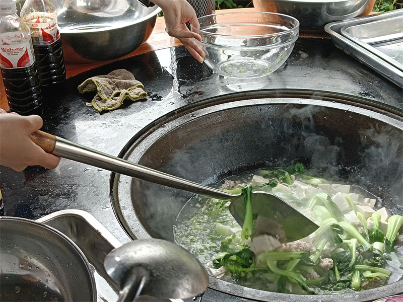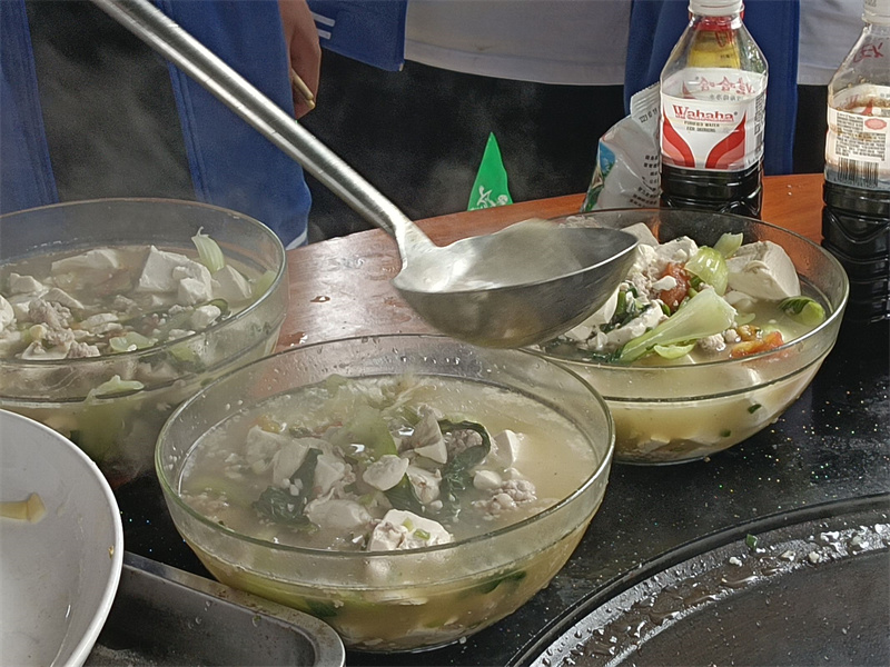 分析2班的圆子豆腐青菜汤,荤素搭配,营养健康。体现成都人柔情一面。