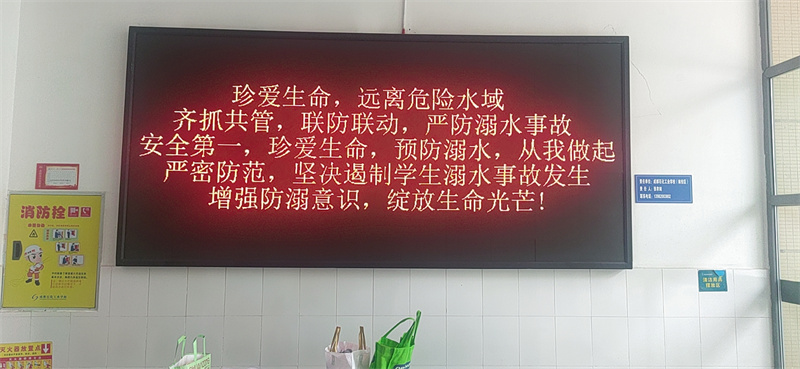 此外,学校还利用校园内的大屏进行防溺水宣传。大屏上滚动播放着防溺水宣传片和警示标语,时刻提醒着学生们要远离危险水域,珍惜生命。这种直观生动的宣传方式吸引了众多学生驻足观看,起到了良好的宣传效果。