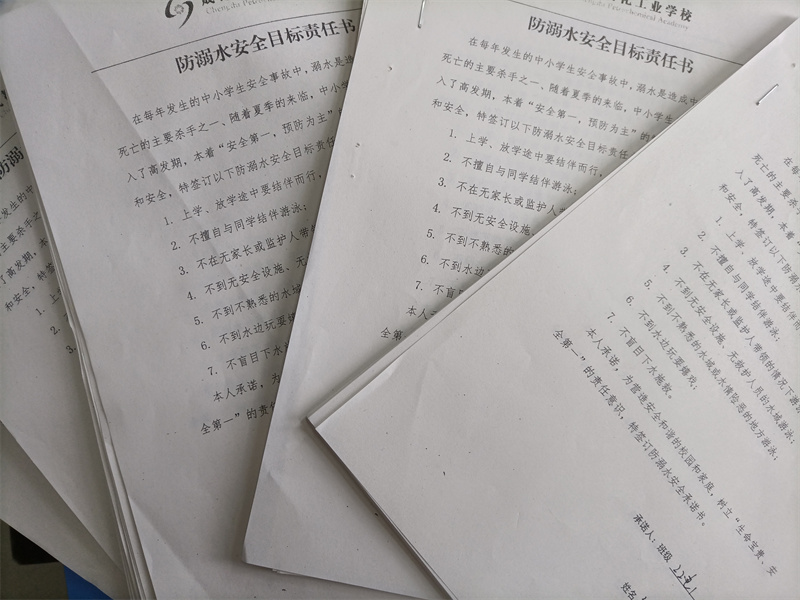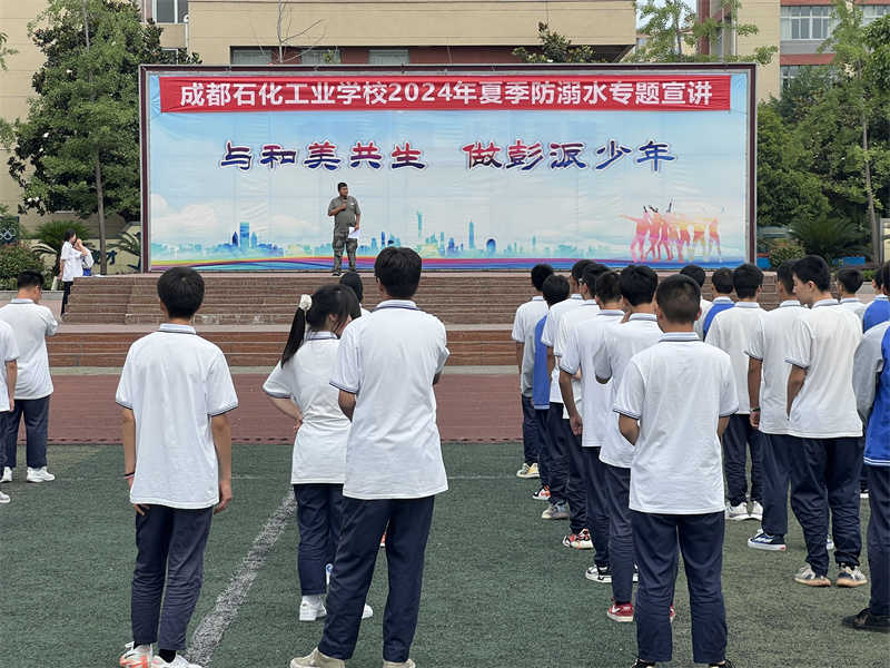 为了增强学生的防溺水意识,保护学生生命安全,近日成都石化工业学校开展了一系列丰富多彩的防溺水专题教育活动,通过主题班会、课间操、大屏宣传以及发放家长书和承诺书等多种形式织就一张防溺水安全网。
