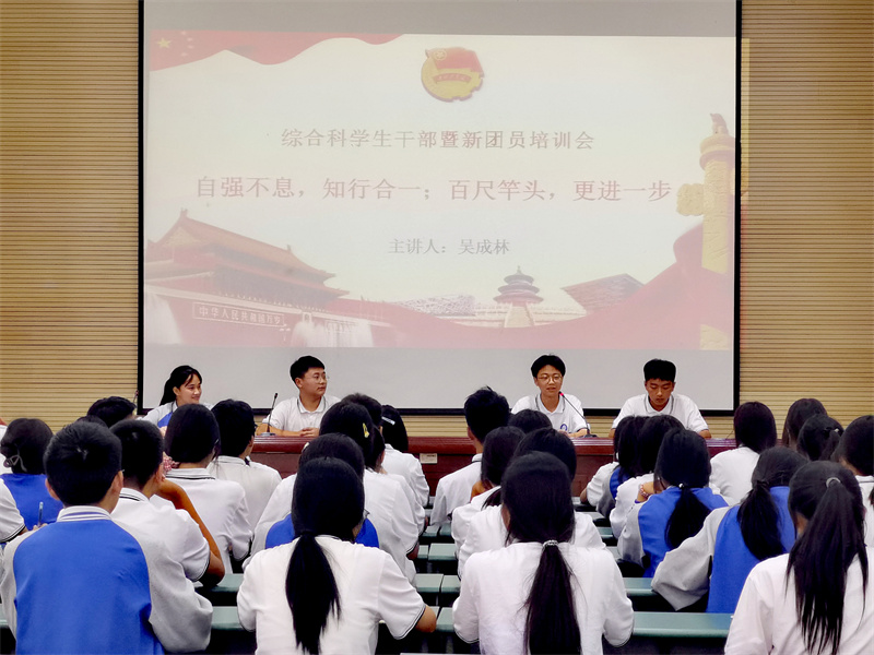 综合科学生会主席吴成林以“自强不息,知行合一;精益求精,更上一层楼”为题,深刻阐述了学生干部在校风建设及个人成长路径上的关键影响,激励在场每位学生干部勇于承担,敢于创新,全身心致力于为全校师生提供优质服务。