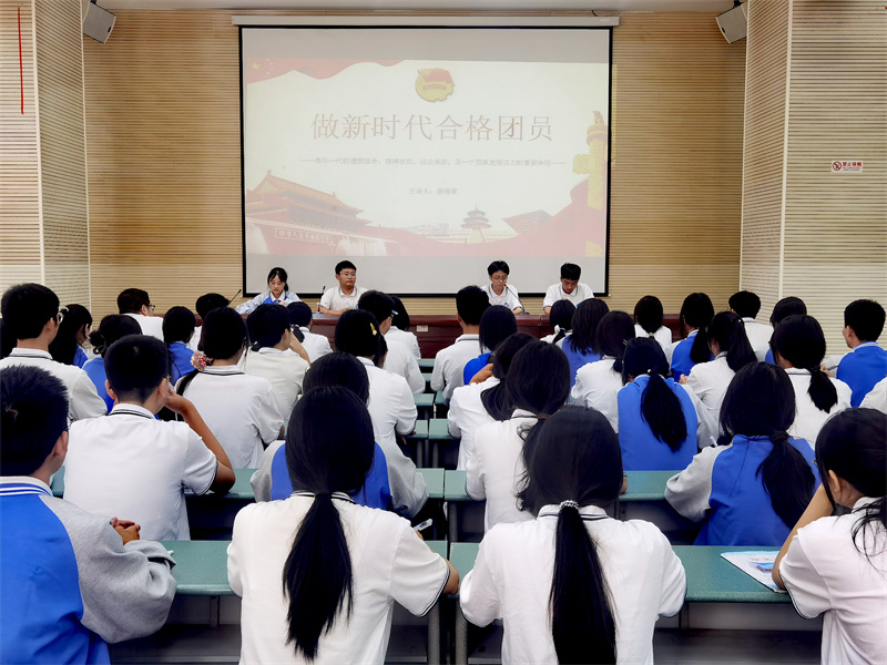 团支部书记唐雨萱以“成为新时代的优秀共青团员”为主题展开演讲,强调每一位团员铭记入团誓言,严守团章纪律,勤勉学习,主动投身社会实践,为实现中华民族伟大复兴的宏伟蓝图添砖加瓦。