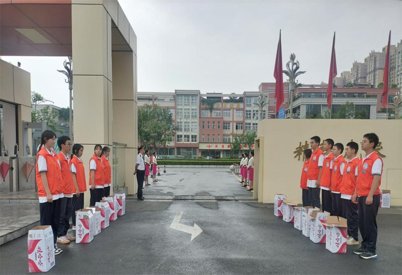 炎炎夏日,志愿者们的热情如同清泉流淌,为参观的师生和家长代表送去一份清凉与关爱。穿着橘色马甲的“小化石”志愿者们,以饱满的热情、充沛的精力、耐心的态度,礼貌的语言为嘉宾热情服务,成为了校园一道靓丽的风景线。