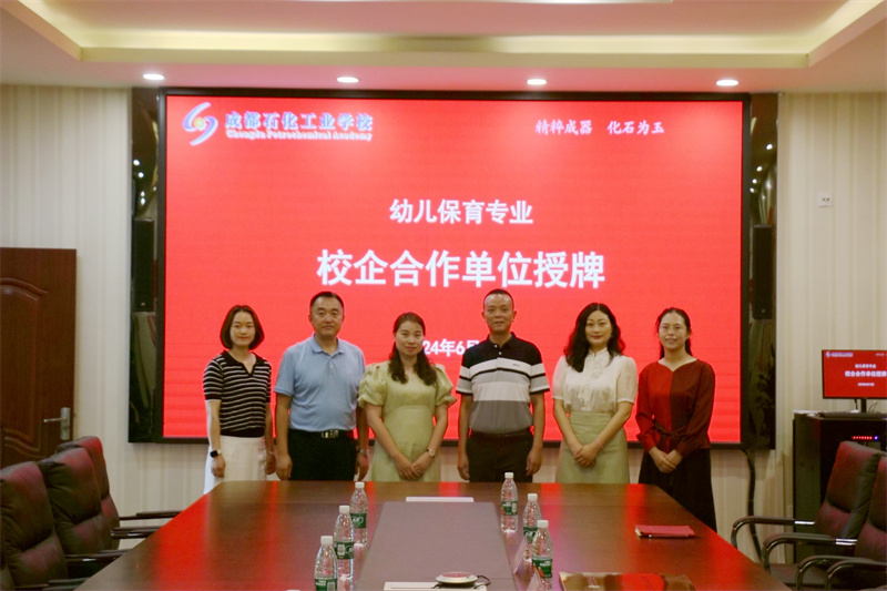 6月19日,成都石化工业学校幼儿保育专业与彭州市丹景山幼儿园、彭州市九尺幼儿园、彭州市隆丰幼儿园、彭州市三界幼儿园在北校区第三会议室签订了校企合作协议并举行授牌仪式,成都石化工业学校党委副书记、校长张昌波,教务处主任、学前信息科科长杨志强及各幼儿园负责人出席活动。