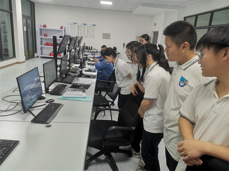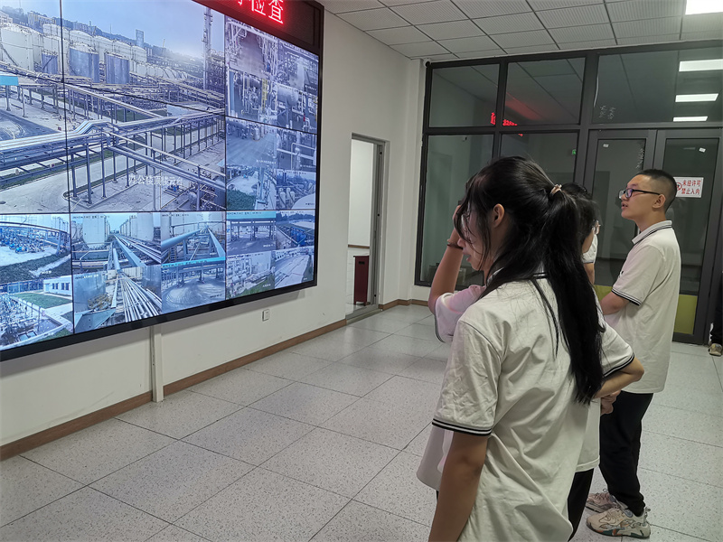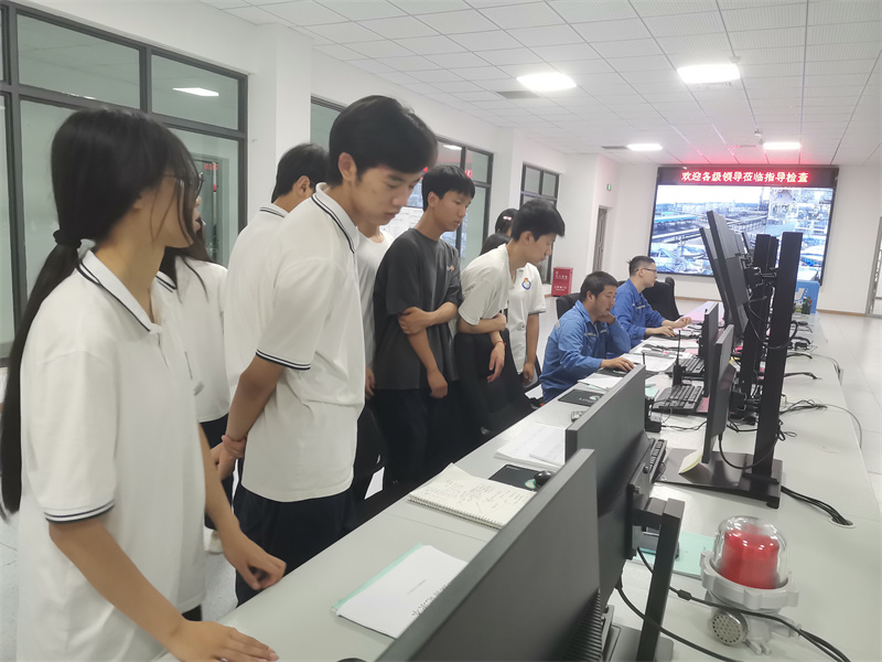 师生们在晟源石化总经理助理赵丽坤的引领下参观了晟源石化生产区,了解苯了乙烯生产装置流程,观摩了晟源石化的心脏“DCS控制室”,参观了该企业的分析检测中心。师生们在教学与学习、专业建设、岗位技能要求等方面收获颇丰,深刻体会到了数字技术推进现代化工企业生产模式变革的重要作用。