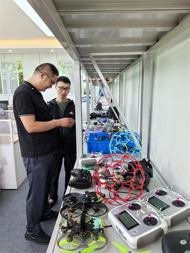 随后,考察团参观了公司的试飞基地。这里陈列着各种型号的无人机,从基础教学用机到高端商用机型应有尽有。公司技术人员现场演示了无人机的组装、调试、飞行及数据处理等全过程,让考察团成员对无人机技术的实际应用有了更加直观和深入的了解。罗冬梅表示,学校将积极对接企业需求,调整课程设置,引入更多前沿技术和实践案例,努力提升学生的专业素养和实践能力,为企业输送更多“用得上、留得住”的优秀人才。