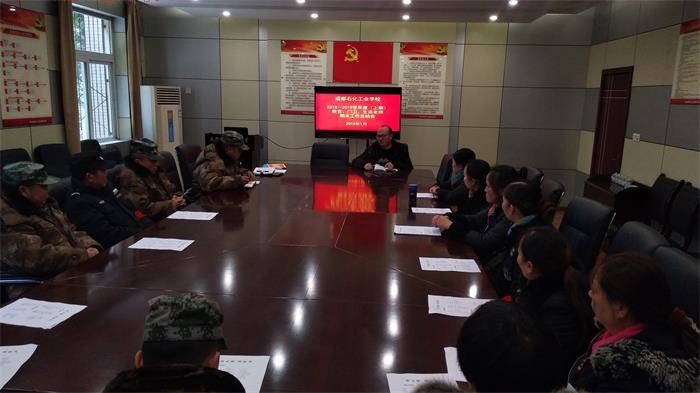 为进一步规范外聘人员的管理,更好地发挥外聘人员作用,进一步提高管理质量, 1月9日,成都石化工业学校南、北校区政教处分别召开了外聘人员期末工作总结会,政教处负责人、公寓主管、公寓管理老师、教官、生活老师、门卫等近50人参加了会议。