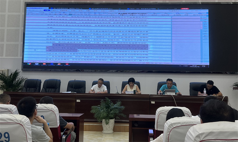 会上,教务处主任杨志强组织与会人员学习了二十届三中全会关于教育及职业教育相关要点、教育部深化现代职业教育体系建设改革现场推进会精神、《四川省职业教育条例》等职业教育最新政策和文件,就教务处本学年教学时间安排、教学工作推进、职普融通、提升课程质量、技能大赛、三名工程建设等重点工作做说明和强调。