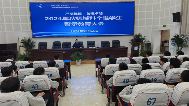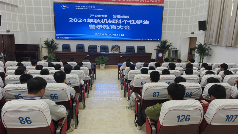 10月15日,成都石化工业学校机械科个性学生警示教育大会在庄严的氛围中拉开帷幕。