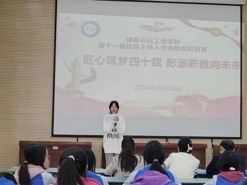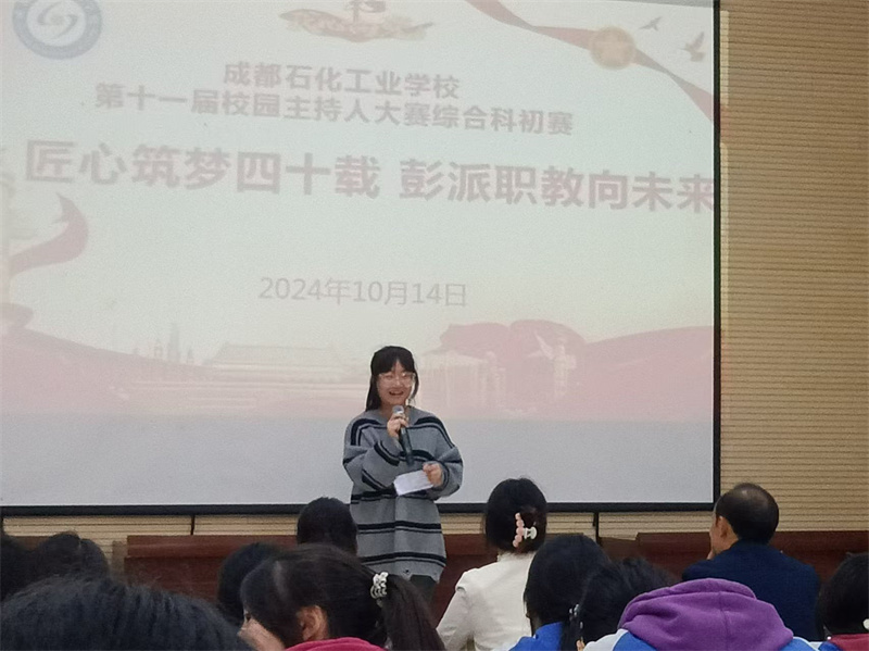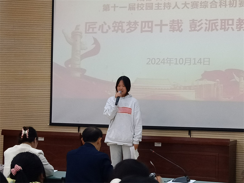 10月14日,我校综合科在南校区多功能厅成功举办了以“匠心筑梦四十载 彭派职教向未来” 为主题的第十一届校园主持人大赛初赛,该专业科三个专业的三十余名同学参加了比赛。