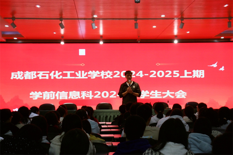 此次学生大会,学前信息科德育副科长为同学们详细解读了《成都石化工业学校学生纪律处分条例》、教育部《关于加强中小学生手机管理工作的通知》等相关规章制度,并着重要求同学们要树立红线意识,严格遵守学校校规校纪。并对学生进行交通安全、网络安全、预防学生欺凌、预防电信诈骗等方面的专题教育。