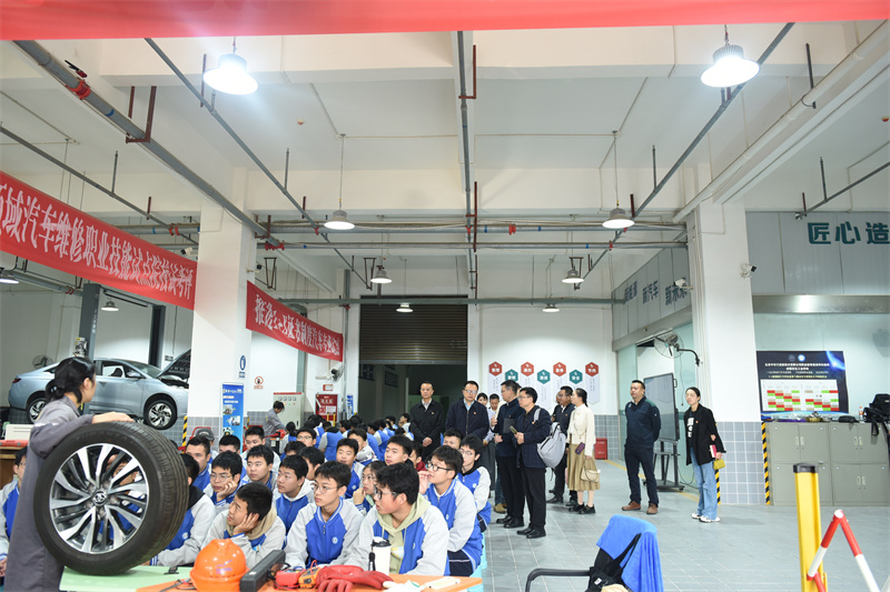 仪式开始前,李强一行参观了成都石化工业学校的行知长廊、匠心律道、彭州市校园法律服务中心·政法四方联动共育空间、彭州市禁毒教育基地、机械实训基地和汽修实训中心等。