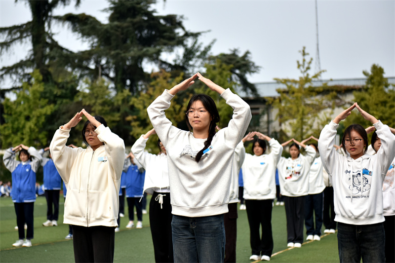新课间操展示时,同学们活力四射,动作刚劲有力,展现出了新时代青年的蓬勃朝气。现场气氛热闹非凡,加油声此起彼伏。