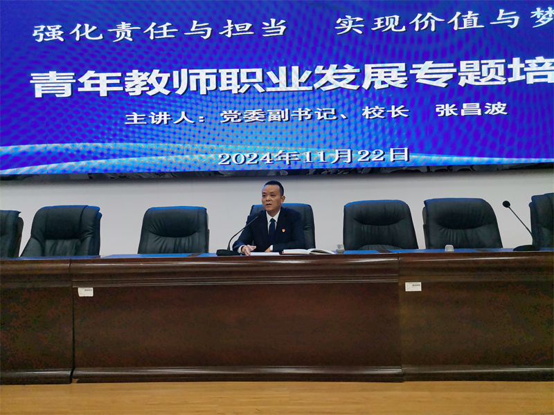 开班仪式上,党委副书记、校长张昌波作了主题为“强化责任与担当,实现价值与梦想”的动员讲话。他表示,学校一直以来都非常重视青年教师的培养和发展,始终致力于为青年教师提供广阔的发展空间和良好的工作环境。张昌波校长就青年教师职业发展作了专题培训,并对青年教师提出希望和要求:一是要坚定理想信念,忠诚于党的教育事业;二是要不断学习,提高自身素质;三是要勇于创新,积极探索教育教学改革;四是要关爱学生,做学生的良师益友;五是要团结协作,共同促进学校发展。他鼓励青年教师能够珍惜时光,努力工作,不断进步,为学校的发展做出更大的贡献。