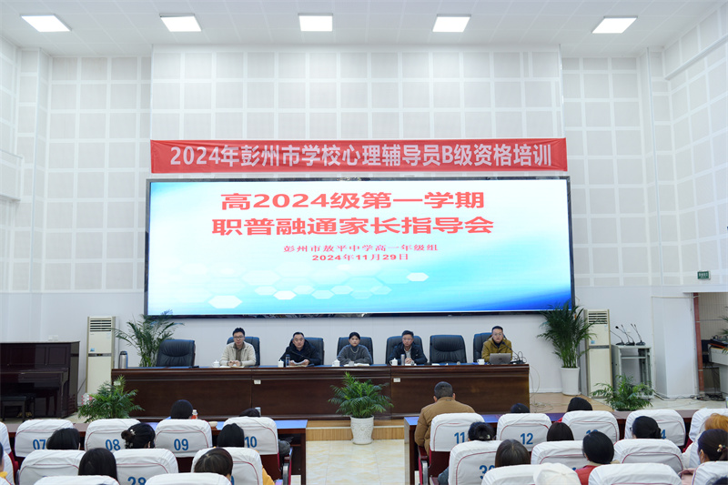为促进家校联系,让每位家长了解职普融通的办学理念、融通策略和管理思想,真正达到家校携手共同育人,形成强大而有效教育合力,11月29日上午,成都石化工业学校和彭州市敖平中学联合召开的2024级普职融通班家长会在成都石化工业学校南校区第一会议室召开,会议由成都石化工业学校教务处主任杨志强主持,敖平中学副校长王勇、高一年级组长蒋诚主任、成都石化工业学校副校长罗冬梅、教务处副主任王皓及2024级两个融通班86名学生家长参加了此次会议。