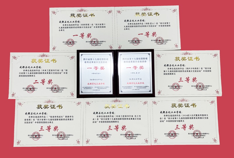 在刚刚结束的四川省第十九届校园影视教育成果展示活动中,成都石化工业学校共选送9部作品参赛,其中校园MV《你的答案》、校园短剧《诗韵.匠心》2部作品荣获省一等奖,1部获省二等奖,4部获省三等奖。