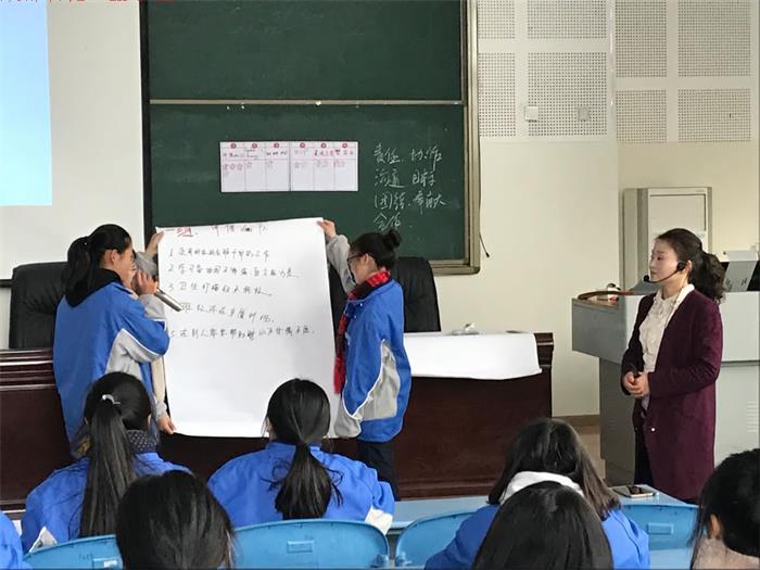 其中两位一等奖获得者何家叙老师的《发扬大雁精神 增强班级凝聚力》和袁润芝老师的《“纸”上人生》班会创意贴近学生生活,在课堂上获得学生高度的参与。老师运用精美的课件,注重情景的创设,调动学生主体作用的发挥。课堂上师生互动、生生互动、让学生积极投入、积极参与情绪体验,充分展现出学生的才干,既丰富了活动内容和形式,又提高了教育效果。