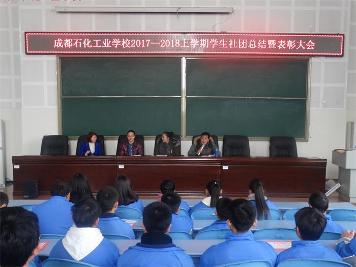 12月28日中午,成都石化工业学校2017年学生社团工作总结会议在109会议厅召开。政教处负责人、各社团指导教师、学生会社团部成员以及各社团成员参加了会议。