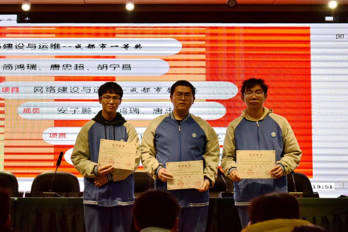 此后,大会为在2024年成都市学生技能比赛中获奖的同学颁奖,高年级学生进行了技能成果展示。