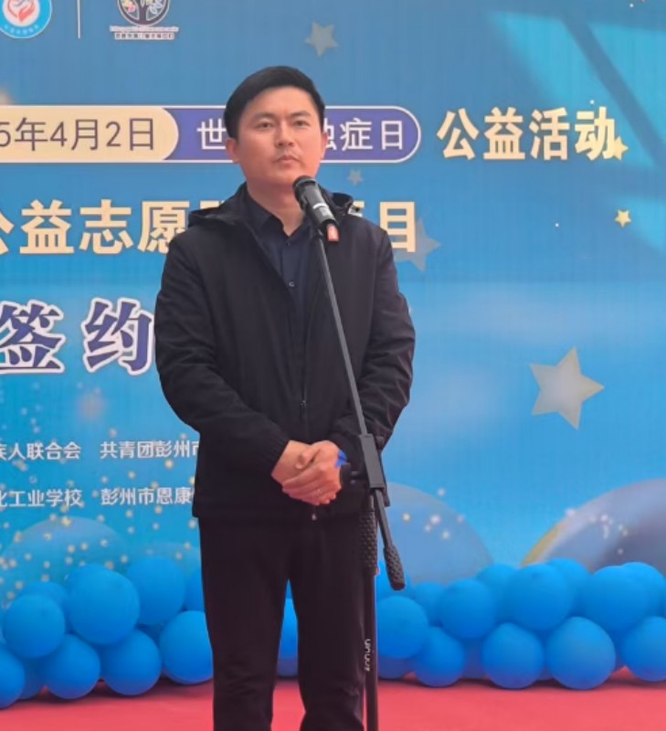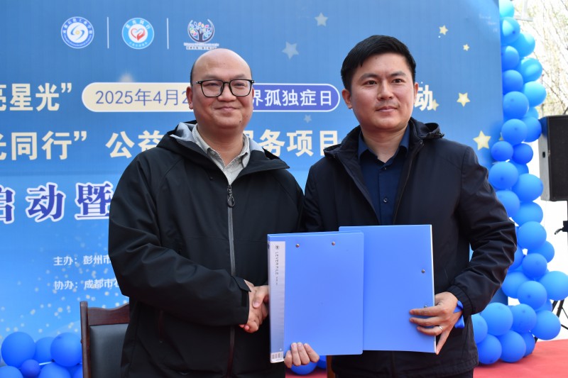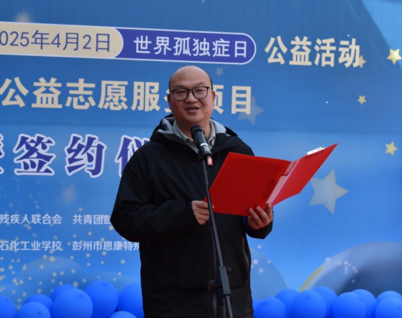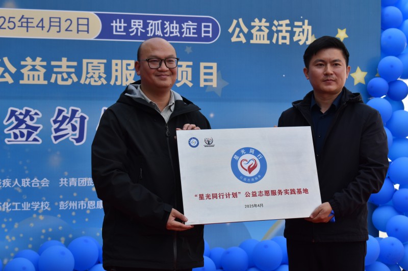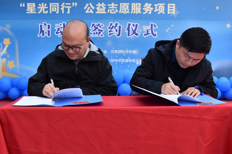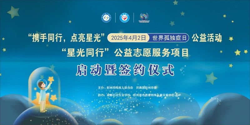 4月2日下午,由彭州市残疾人联合会、共青团彭州市委联合主办的“携手同行·点亮星光——关爱孤独症儿童公益行动启动暨签约仪式”在彭州市恩康特殊儿童关爱中心举行。彭州市残疾人联合会、共青团彭州市委相关负责同志、 成都石化工业学校“小化石”青年志愿者、党员教师代表及孤独症儿童家庭代表共同见证“星光同行”公益志愿服务项目正式启航。