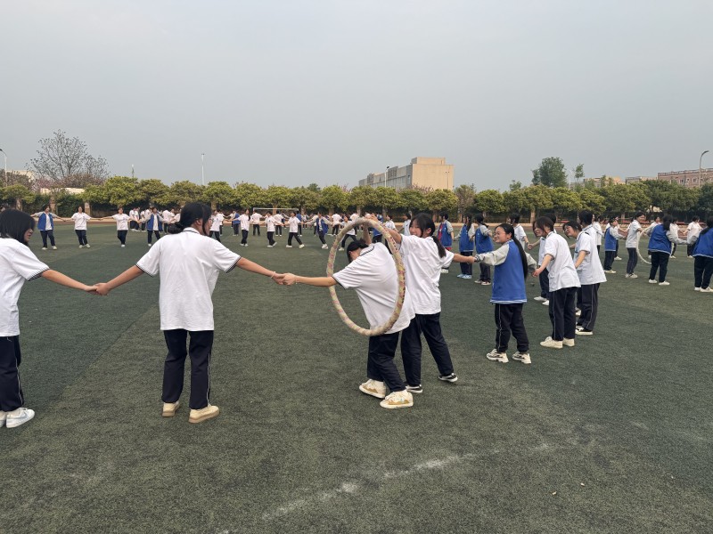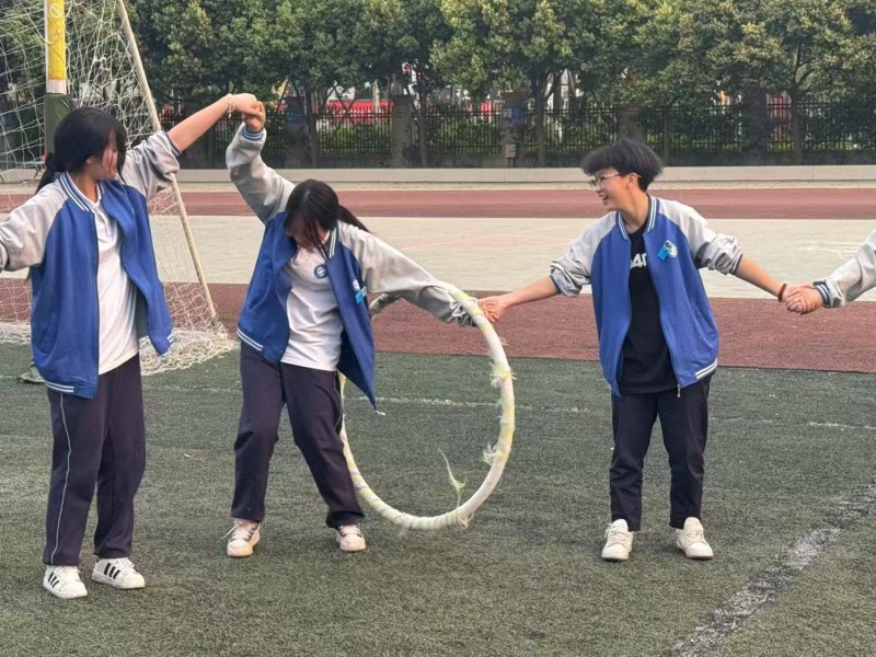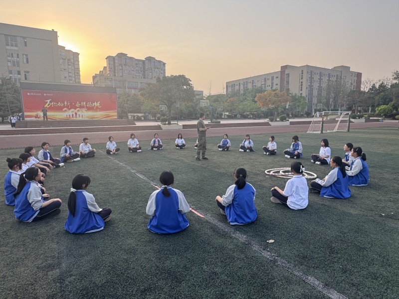 在柔和的斜阳中,同学们个个神采四溢,充满了青春的热情。在军事教官的组织下,大家手拉手围成圈,传递呼啦圈,坚决中途不松手,通过团队协作让呼啦圈快速穿过所有人的身体,过程充满了挑战与乐趣,大家的团队意识在此时此刻得到了升华。