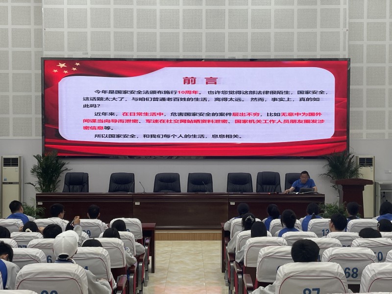 为深入贯彻落实《中华人民共和国国家安全法》,推进国家安全教育、反邪教、反诈骗活动在校园的广泛传播,提升中职学生对国家安全的认识,巩固维护国家安全的思想基础,确立预防邪教和电信网络诈骗的主动意识,4月10日中午,成都石化工业学校举办了以“国家安全?青春挺膺”为主题的团课活动。