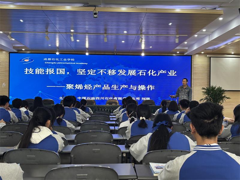 为促进学生职业认知,4月9日,我校特邀成都市共享教师——中国石油四川石化有限责任公司高密度聚乙烯装置特级技师、成都工匠刘强作了一场主题为《技能报国,坚定不移发展石化产业——聚烯烃产品生产与操作》的讲座。2024级化学工艺专业180余名学生聆听了此讲座。