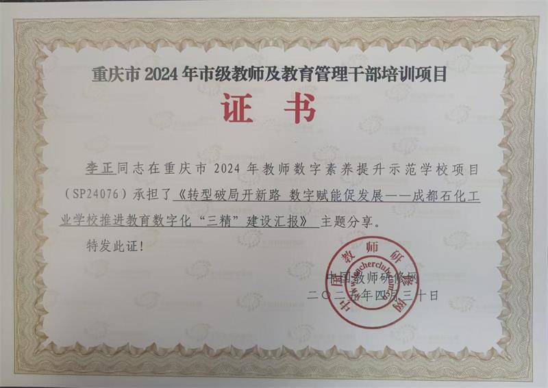 4月24—26日,由重庆市渝中职业教育中心主办的成渝地区双城经济圈职业院校教学研究校际联盟工作会暨教师数字素养提升专题研讨会成功举行。党委专职副书记、纪委书记李正代表成都石化工业学校出席会议并做专题发言,信息中心主管刘珍强老师参加会议。