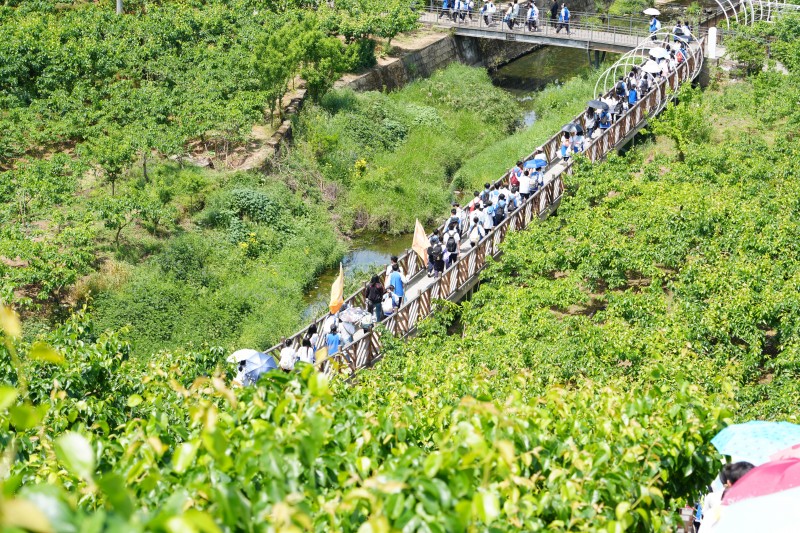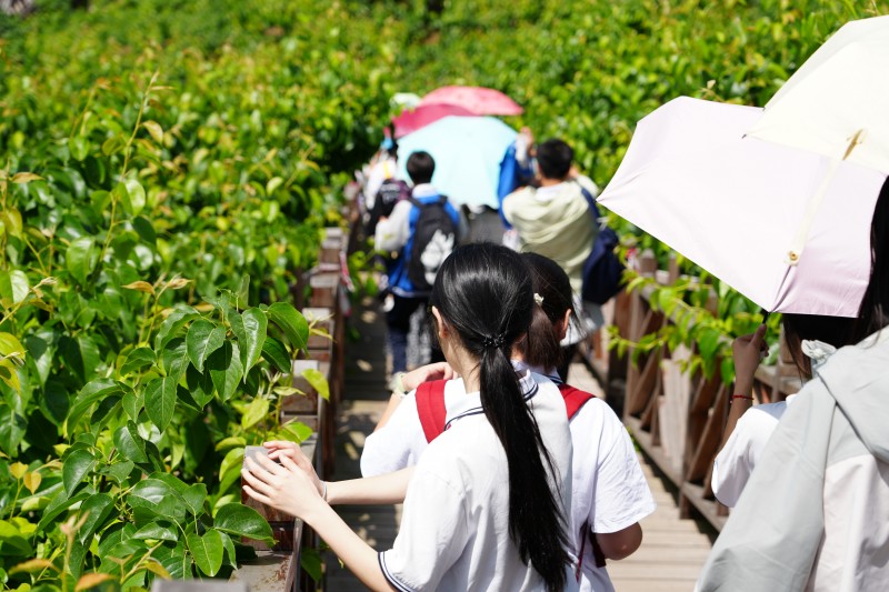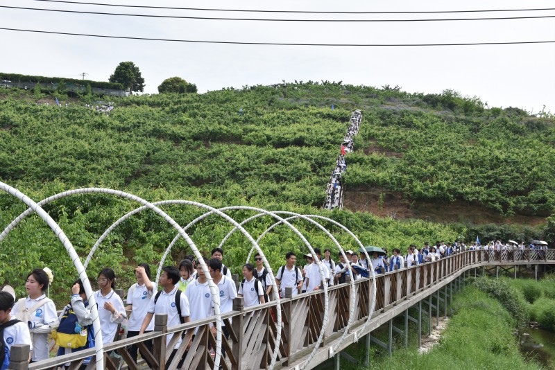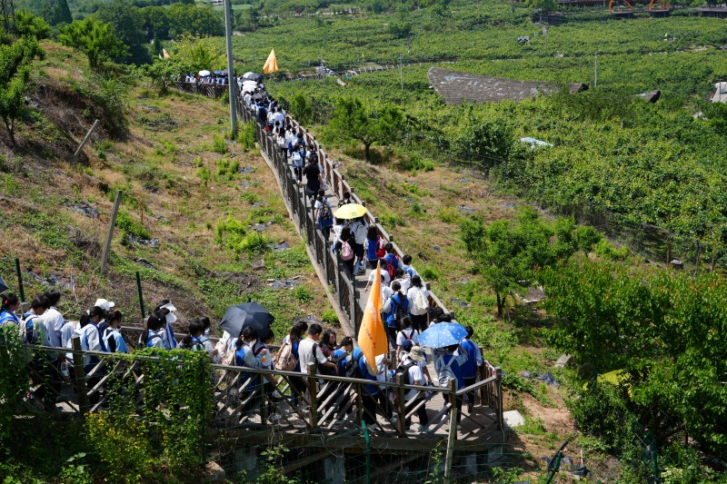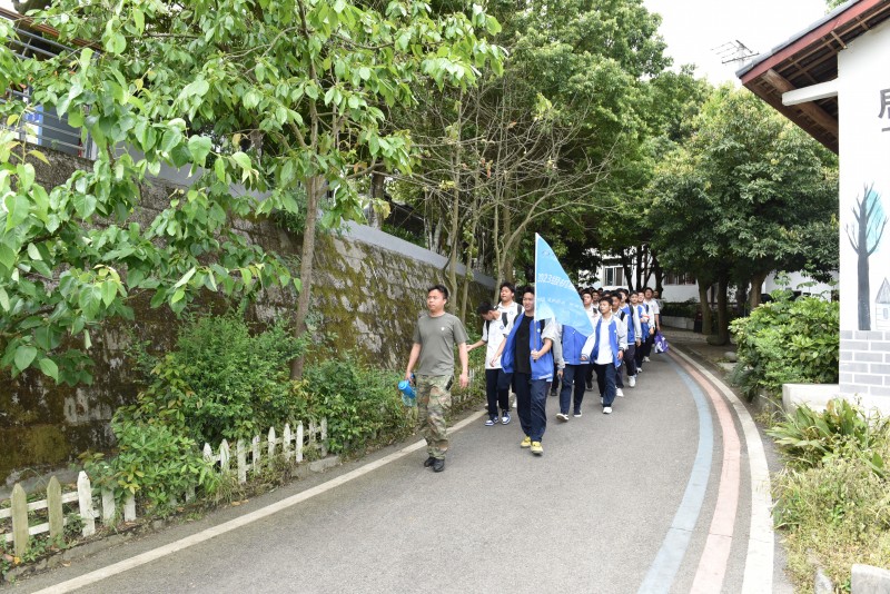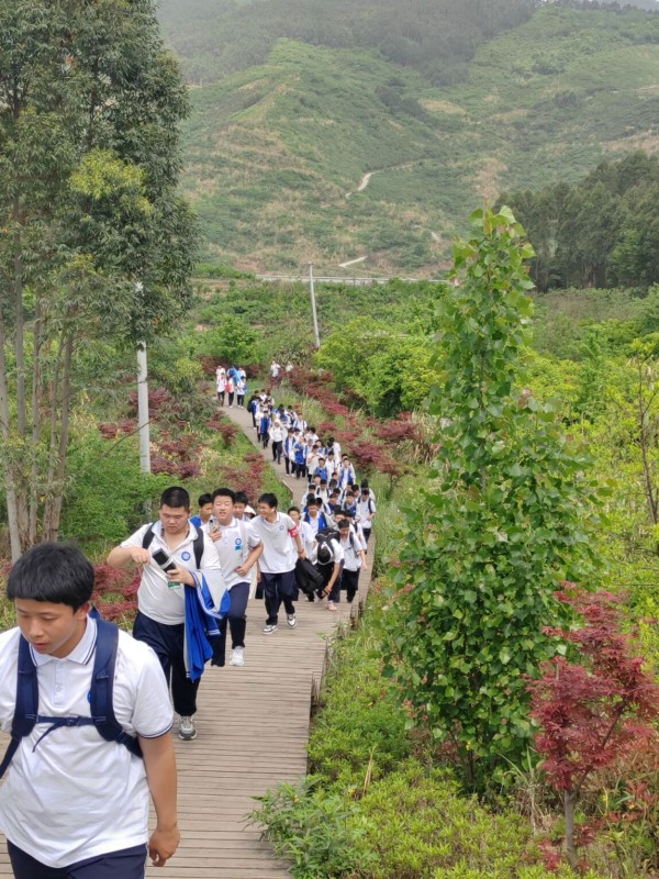 当行程过半,雀跃渐被沉稳取代,沾满泥土的鞋印连成长链,汗湿的后背在阳光下泛着微光,偶有掉队者总会被前后同学自然形成的“人墙”护送前行。