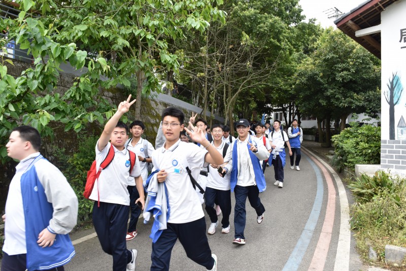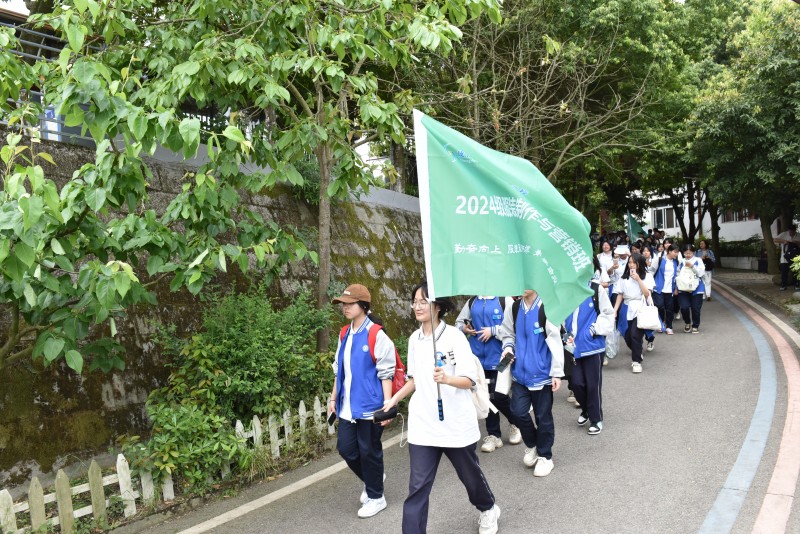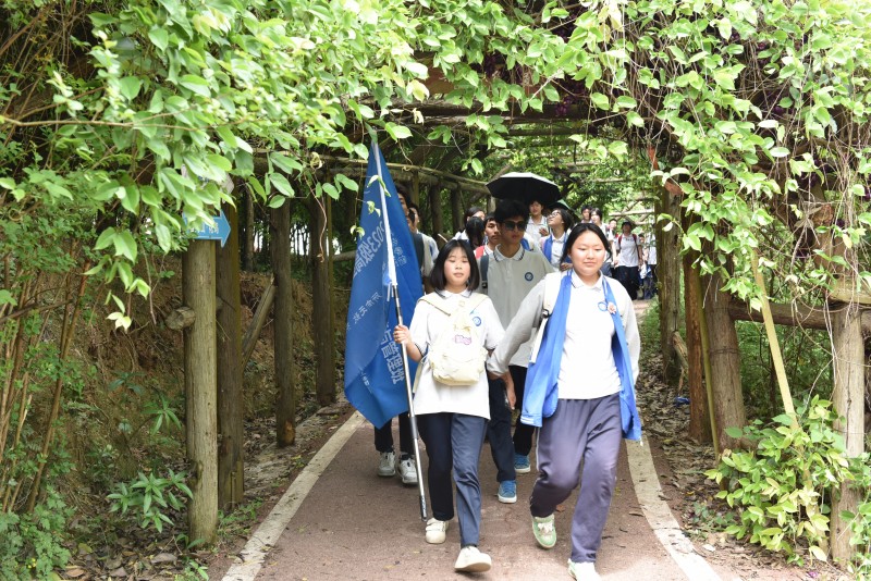 随着徒步拉练开始的哨声响起,一条“行走的彩龙”舞动于葛仙山间——有人哼着轻快的歌,有人用手机定格初绽的野花,有人主动帮助同学分担行囊......青春的活力在山谷间流淌。