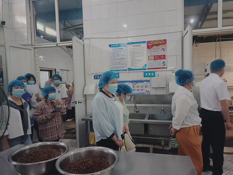 随后,大家一起参观了食堂操作间。食堂工作人员详细介绍了厨房的各类硬件设施设备和用途,以及食材验收、储存、制作、售卖、留样、消毒等流程。规范的流程让家长频频点头,整洁的环境获得了委员们的好评。