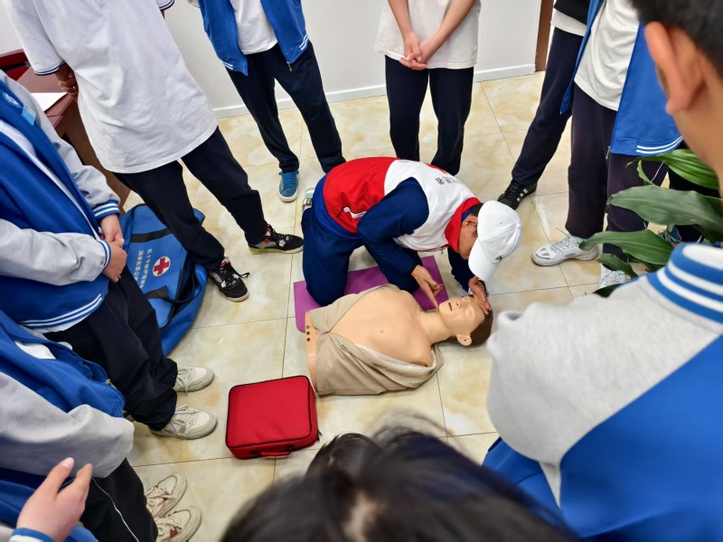 活动中,红十字会培训老师通过生动讲解与现场演示,详细传授了四大核心内容:急救新理念,强调“黄金救援时间”的重要性;心肺复苏术(CPR),从判断意识、胸外按压到人工呼吸的全流程操作;创伤救护技能,包括止血、包扎、骨折固定和伤员搬运;灾害逃生常识:地震、火灾等突发事件的避险与自救方法。
