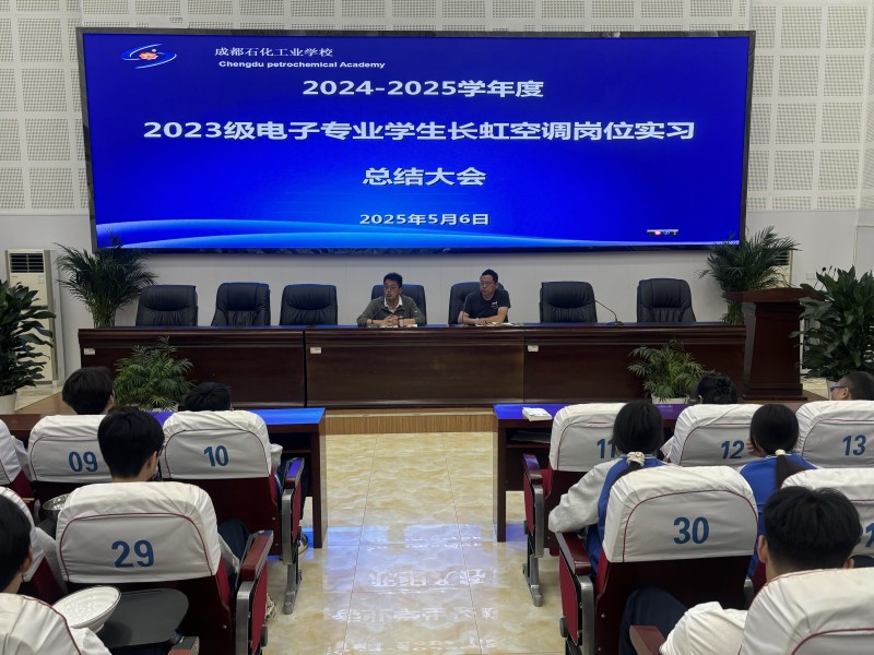 日前,成都石化工业学校电子技术应用专业2023级170余名学生圆满结束了在四川长虹空调有限公司为期七周的岗位实习。