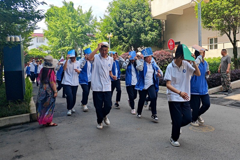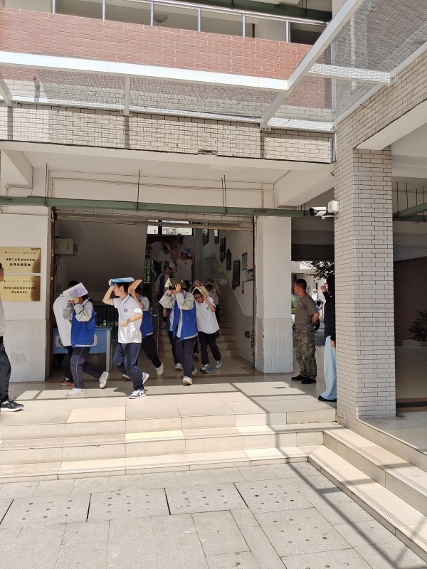 及时组织应急疏散演练。学校统筹,各部门协同提前制定详细的演练方案和应急预案,明确各岗位工作职责和疏散流程,并对全校师生进行了练前培训。