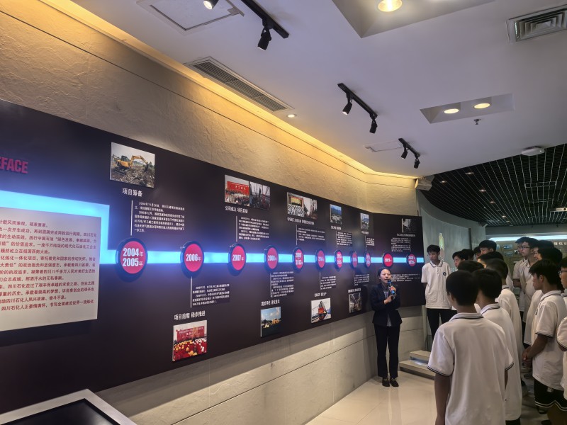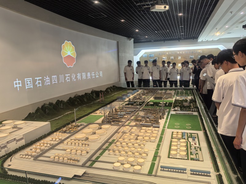 在四川石化党群工作部刘昆霞等工作人员的引领下,师生们详细了解了四川石化的发展历程和厂区生产布局,参观了四川石化的核心区域,包括乙烯生产装置、环氧乙烷生产装置以及对二甲苯生产装置等,近距离观察了企业生产中的管道、储罐、塔、泵等大型机械设备,真切感受到了数字时代化工企业强大的自动化功能。