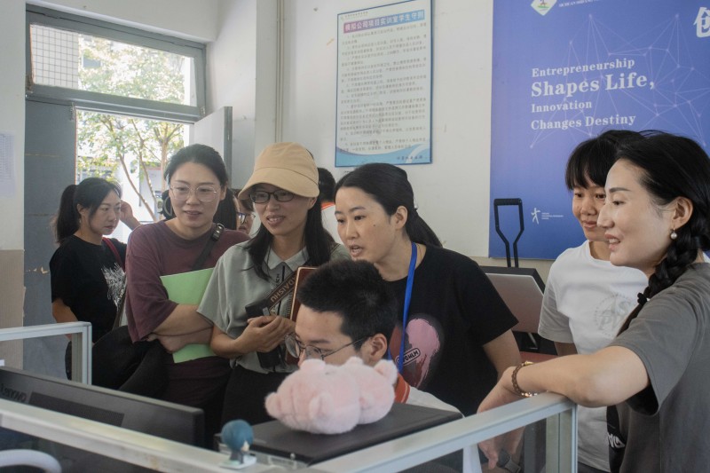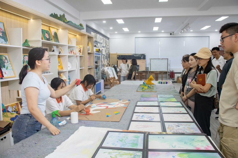 什邡职中信息商务专业部主任李成、副主任刘莎热情接待了我校交流团队,并陪同参观了专业部相关的实训室,包括平面设计、数字媒体和纸浆画工作室。工作室内色彩斑斓的设计作品和创意十足的数字作品,令老师们纷纷驻足欣赏。
