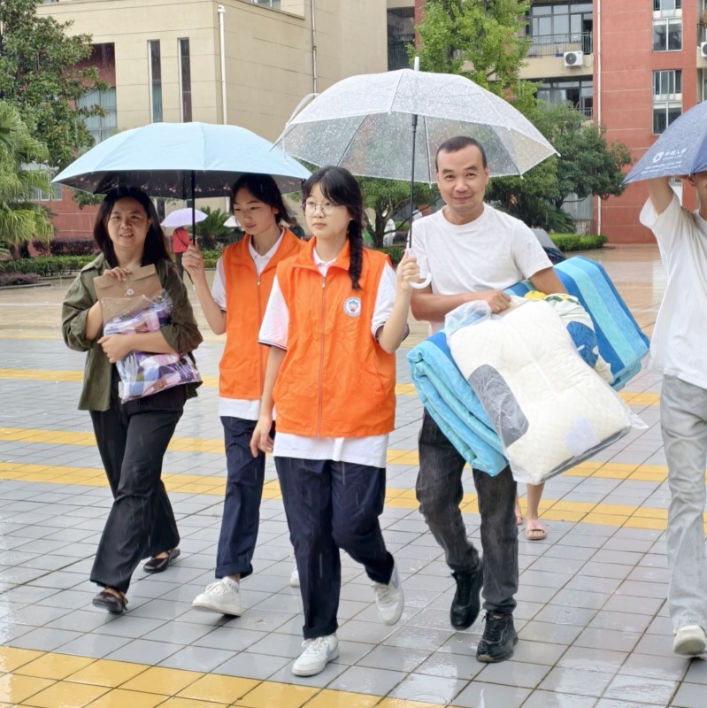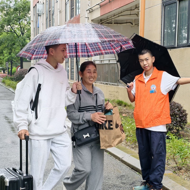 “本来以为得自己扛行李爬五楼,没想到刚到校门口就被’抢’走了,心里一下子就踏实了!”一位新生拍着胸口笑着说。陪孩子来报到的家长们更是看在眼里、暖在心里,一位妈妈拉着志愿者的手不停道谢:“这些孩子比自家娃还上心,看着他们互相帮衬,我们把孩子放学校,一百个放心!”